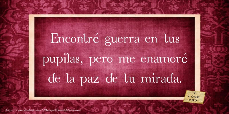 Encontré guerra en tus pupilas, pero me enamoré de la paz de tu mirada.