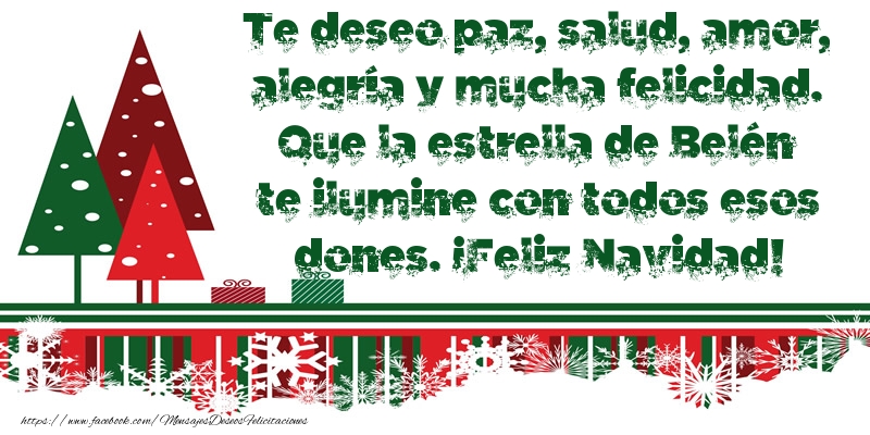 Te deseo paz, salud, amor, alegría y mucha felicidad. Que la estrella de Belén te ilumine con todos esos dones. ¡Feliz Navidad!