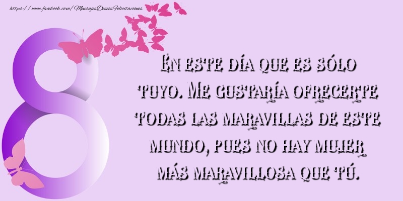 En este día que es sólo tuyo. Me gustaría ofrecerte todas las maravillas de este mundo, pues no hay mujer más maravillosa que tú.
