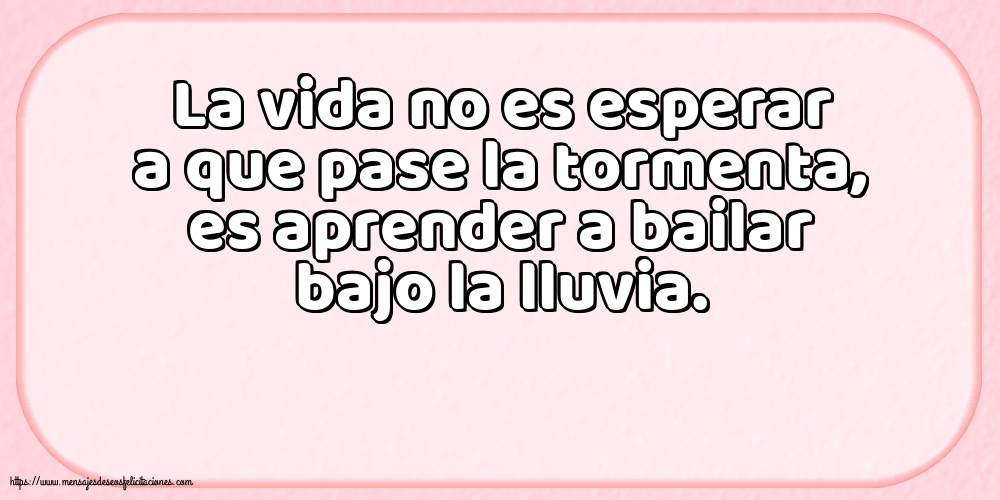 La vida no es esperar a que pase la tormenta, es aprender a bailar bajo la lluvia.