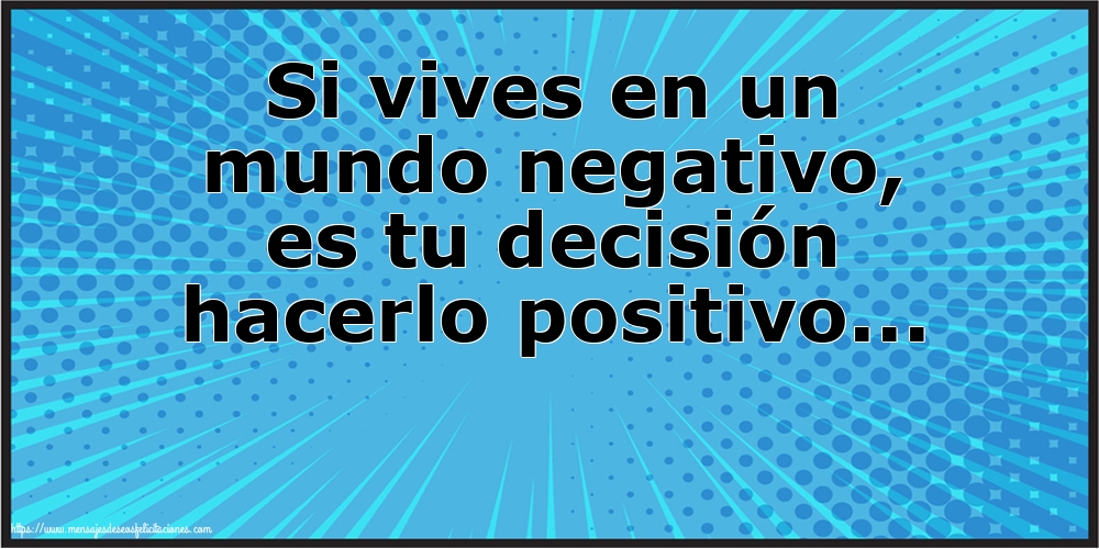 Si vives en un mundo negativo, es tu decisión hacerlo positivo...
