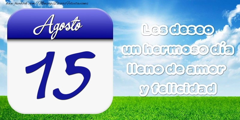 Agosto 15 Les deseo un hermoso día lleno de amor y felicidad