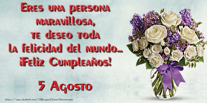 Eres una persona maravillosa, te deseo toda la felicidad del mundo... ¡Feliz Cumpleaños! Agosto 5