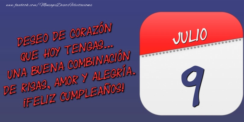 Deseo de corazón que hoy tengas... Una buena combinación de risas, amor y alegría. ¡Feliz Cumpleaños! 9 Julio