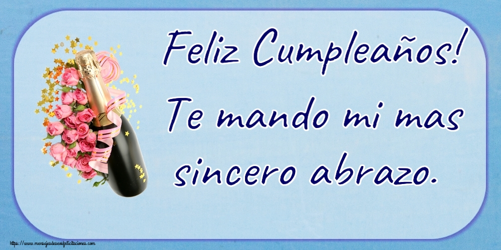 Descargar Felicitación Gratis - Felicitaciones de cumpleaños - Feliz Cumpleaños! Te mando mi mas sincero abrazo. ~ composición con champán y flores - mensajesdeseosfelicitaciones.com
